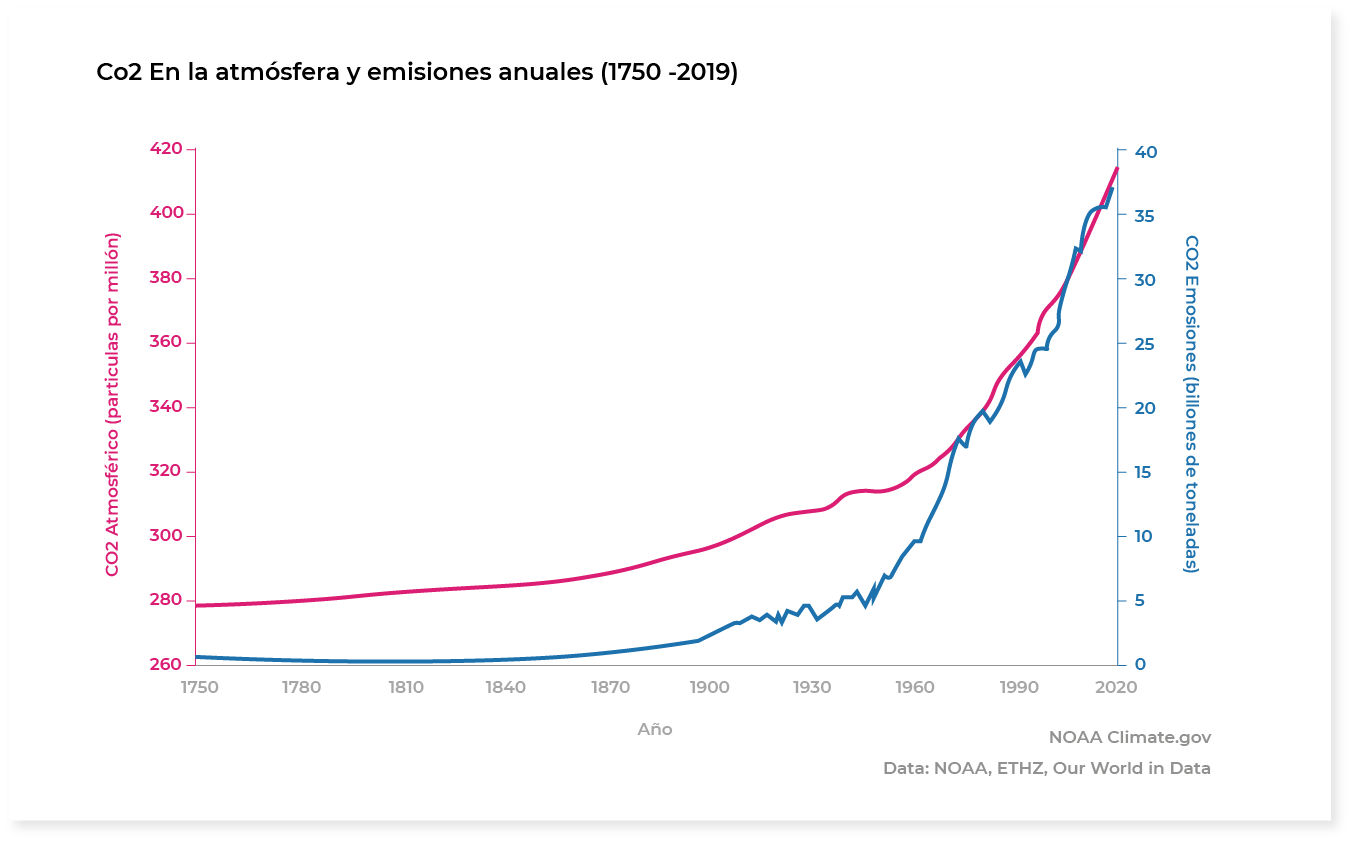 globales de CO2 desde el final de la era preindustrial. Este CO2 agregado ha tenido efectos significativos en el océano. Las aguas